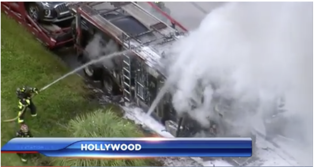 Reference: WSVN. (n.d.). Car carrier catches on fire on Turnpike in Hollywood, NB lanes reopen. Retrieved from https://wsvn.com/news/local/broward/car-carrier-catches-on-fire-on-turnpike-in-hollywood-nb-lanes-reopen/